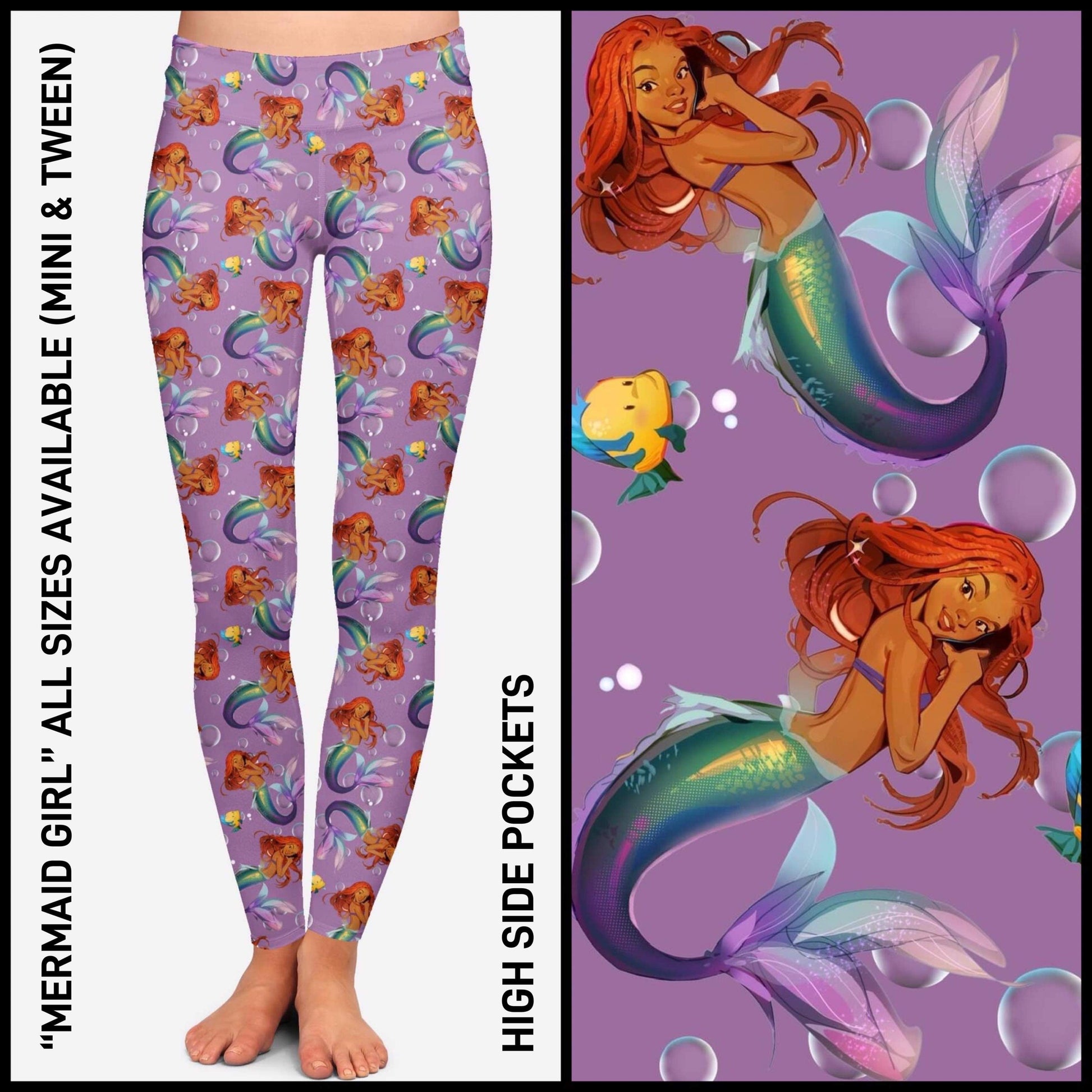 RTS - Mermaid Girl Leggings with High Side Pockets